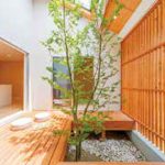 Code2 中庭 ―― 「新民家」では伝統的な日本家屋に見られる縁側で囲まれた「中庭」を設けた。光と緑の存在が間近に感じられる中庭を設けることで、季節や時間の移ろいを屋内にいながらでも感じ取ることができ、情緒のある豊かな時を家で過ごすことができる。