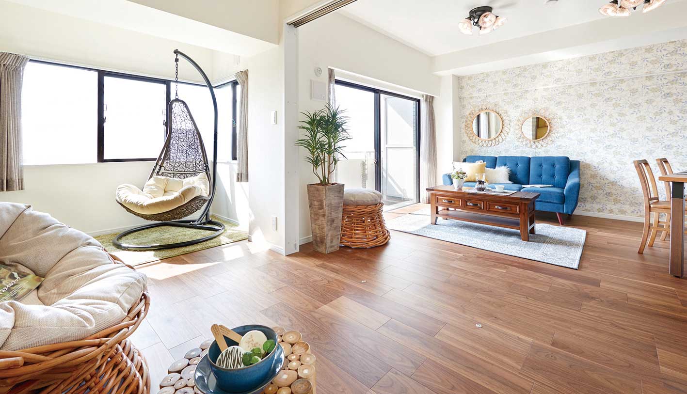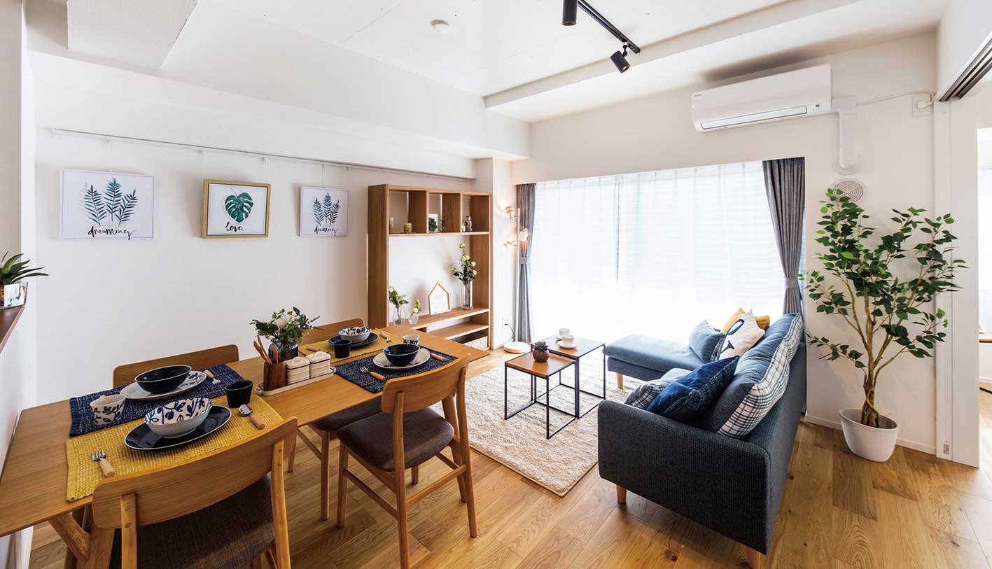 仕入時に「居住者がいなかったこと」、「防音・断熱の補強が必要だと判断したこと」、「各住戸同じ形の間取りであるが、世情はライフスタイルや好みの多様化が進んでいる」などを勘案して、事業の方向性を「専有部を全住戸フルスケルトンリノベーション」する企画としました。さらに、ただ単純に全住戸フルスケルトンにするのではなく購入する方に経済面で還元できるよう、通常の「フラット35」の金利から一定期間金利を引き下げるフラット35リノベの「省エネルギー性適合基準」に合うようバリューアップ。全51戸中49戸の住戸がフラット35リノベの適用が可能となり(金利Aプランは45戸)、ご購入されるお客様に性能だけではなく経済面でも還元しています。また、専有部のリノベーションは個性の違う3社に発注、タイプをそれぞれ「北欧モダンテイスト」「アーバンシックテイスト」「ブルックリンテイスト」に仕上げ、ライフスタイルや好みで選んでいただけるよう工夫しています。