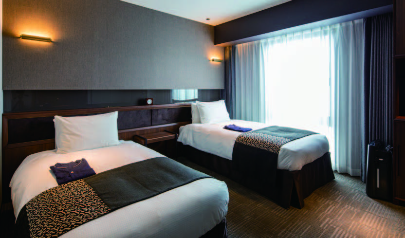 22㎡のタイプを基本として落ち着いた雰囲気の中でゆったりと寛ぐことができる。客室内には、室内での食事やビジネス等にも対応したオリジナルの家具を設け、宿泊客の利用スタイルに合わせて快適に過ごせる工夫を行っている。