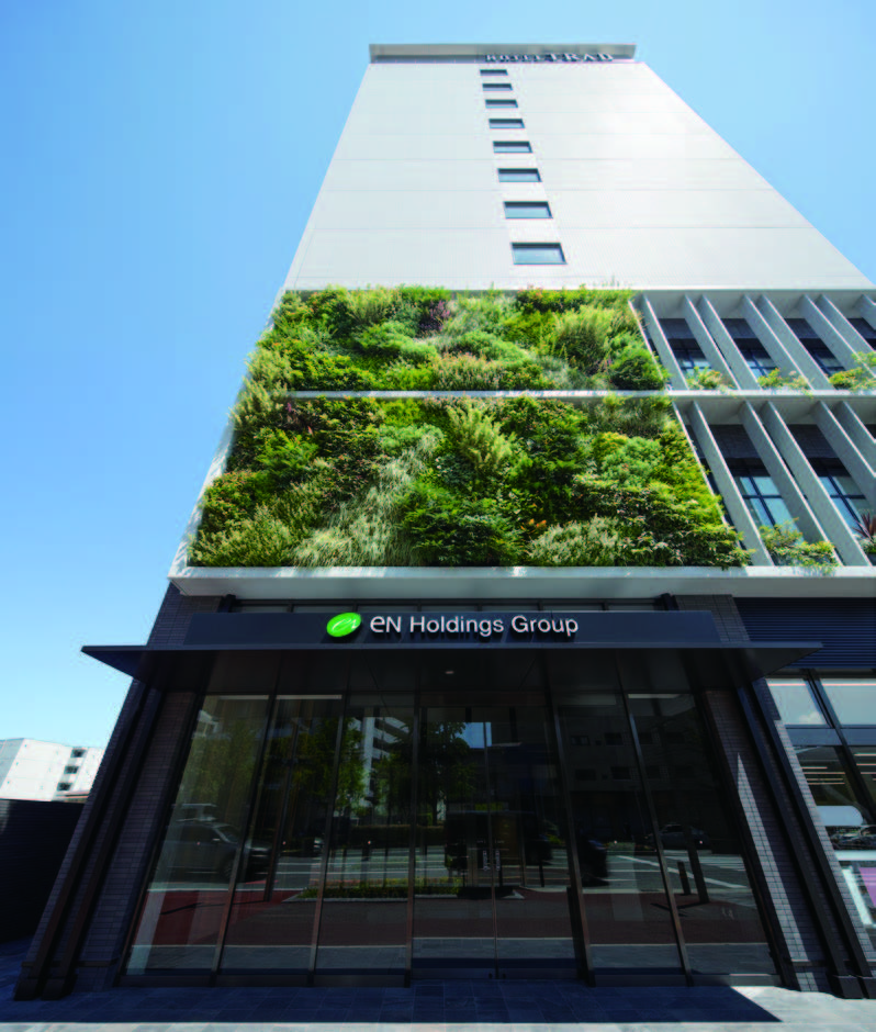 「博多」駅と天神の中間に位置する住吉地区での本社ビルとホテルの複合施設。壁面緑化や四季折々の植栽を100種類以上植え、美しい花の色合いと季節感を融合し、1年中楽しめる庭を演出。ホテルの客室は「和のしつらえ」と英国の歴史ある重厚感を融合させた「トラディショナル」な空間とし、上品な落ち着いた雰囲気を醸し出している。また、都市ガスから電気と熱を取り出し、エネルギーを無駄なく利用するガスコージェネレーションを採用するなど環境負荷軽減にも貢献している。