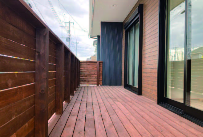 太陽光・蓄電池0円設置、定額電気代、オプションで県産材ヒノキのウッドデッキを4坪50万円で提供。