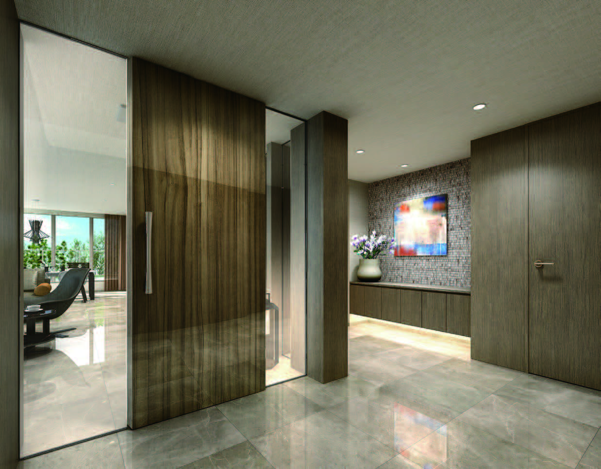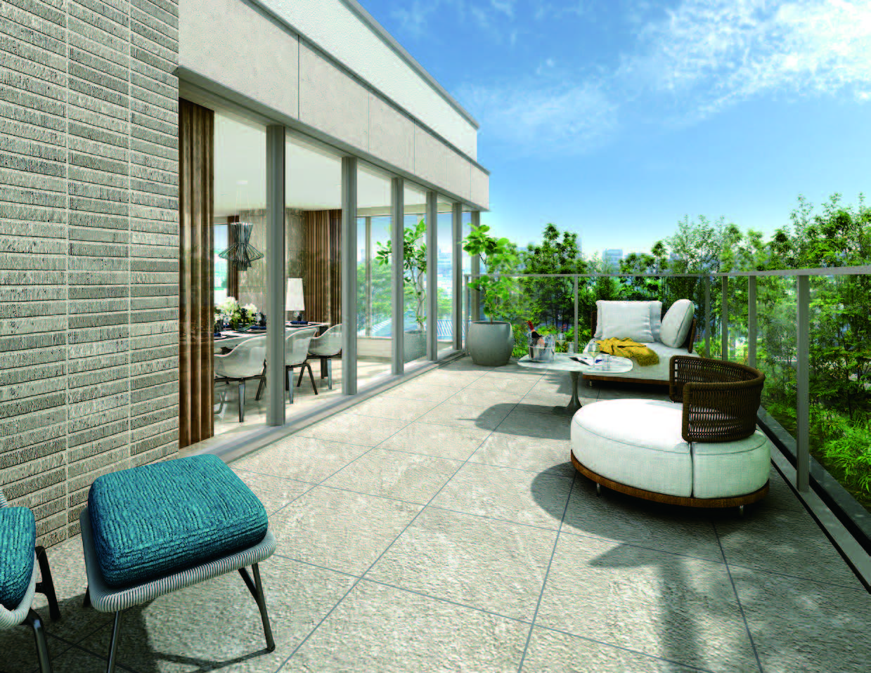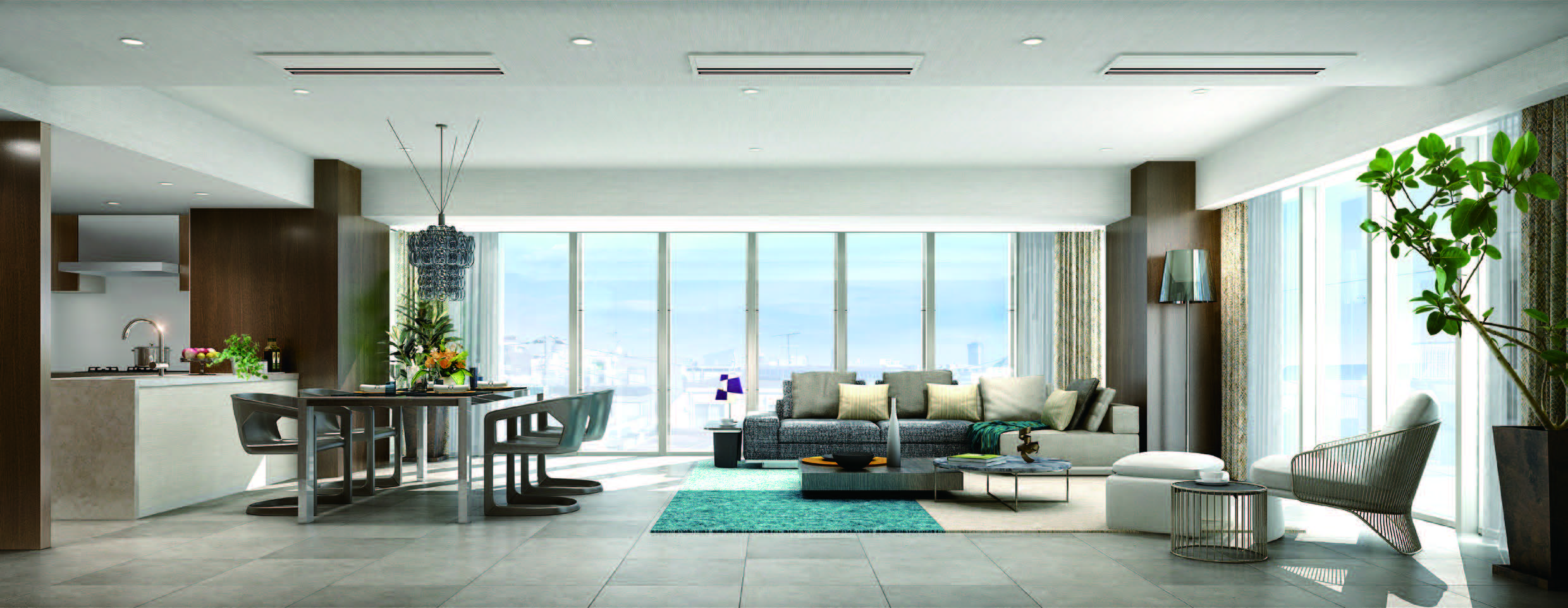 内装についてもLD廊下玄関はマラッツィ社の600角タイル、全室天井カセットエアコン、キッチンはジーマティック製を採用し超高額商品に合うグレードを確保。