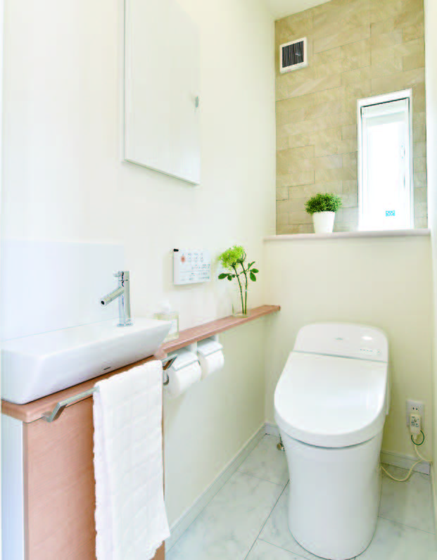 また、吹付発泡断熱を採用することで「高気密高断熱住宅」とし、LDK に「ガス温水床暖房」を採用し、ヒートショックの原因にもなる温度差が少ない、快適に過ごせる住まいとしています。