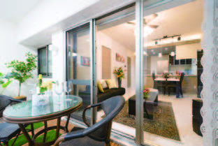 ・浦添市民の花「オオバナアリアケカズラ」、ヤシ等の植栽とリゾート灯篭を配置し、緑豊かな閑静なリゾート性あふれる住空間をイメージした。