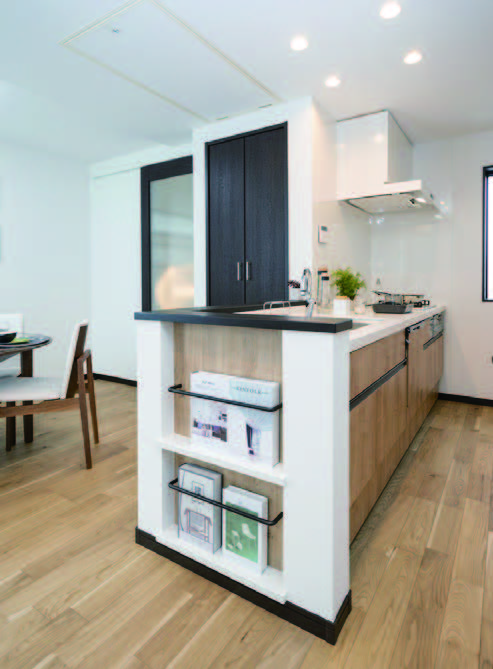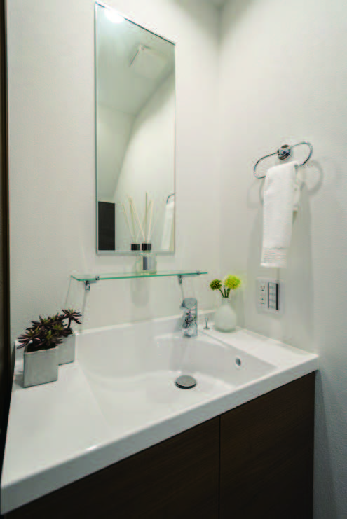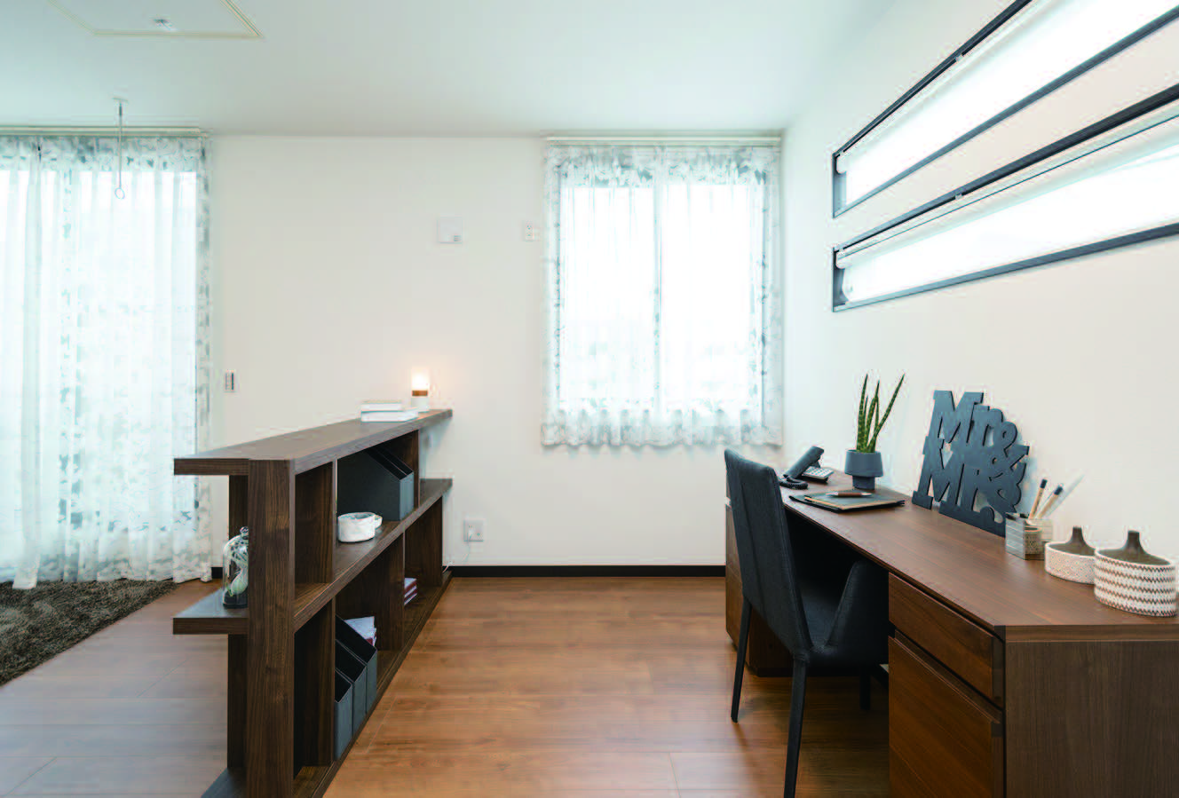 With コロナという時世にあった住まい方提案として、テレワークスペース、1階洗面台の採用、ロボット掃除機置場、スマホステーションと言った細かな配慮を各邸に盛込んでいます。
