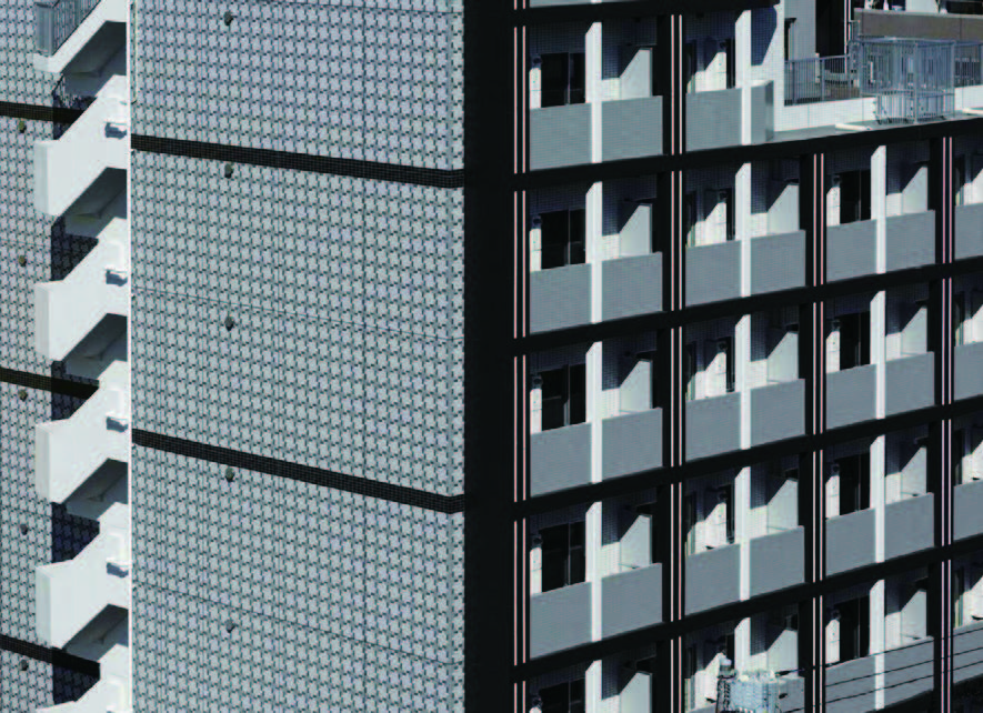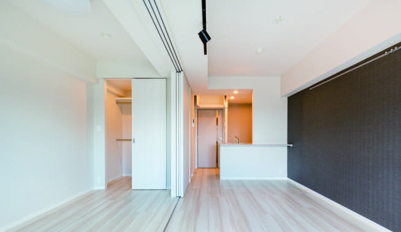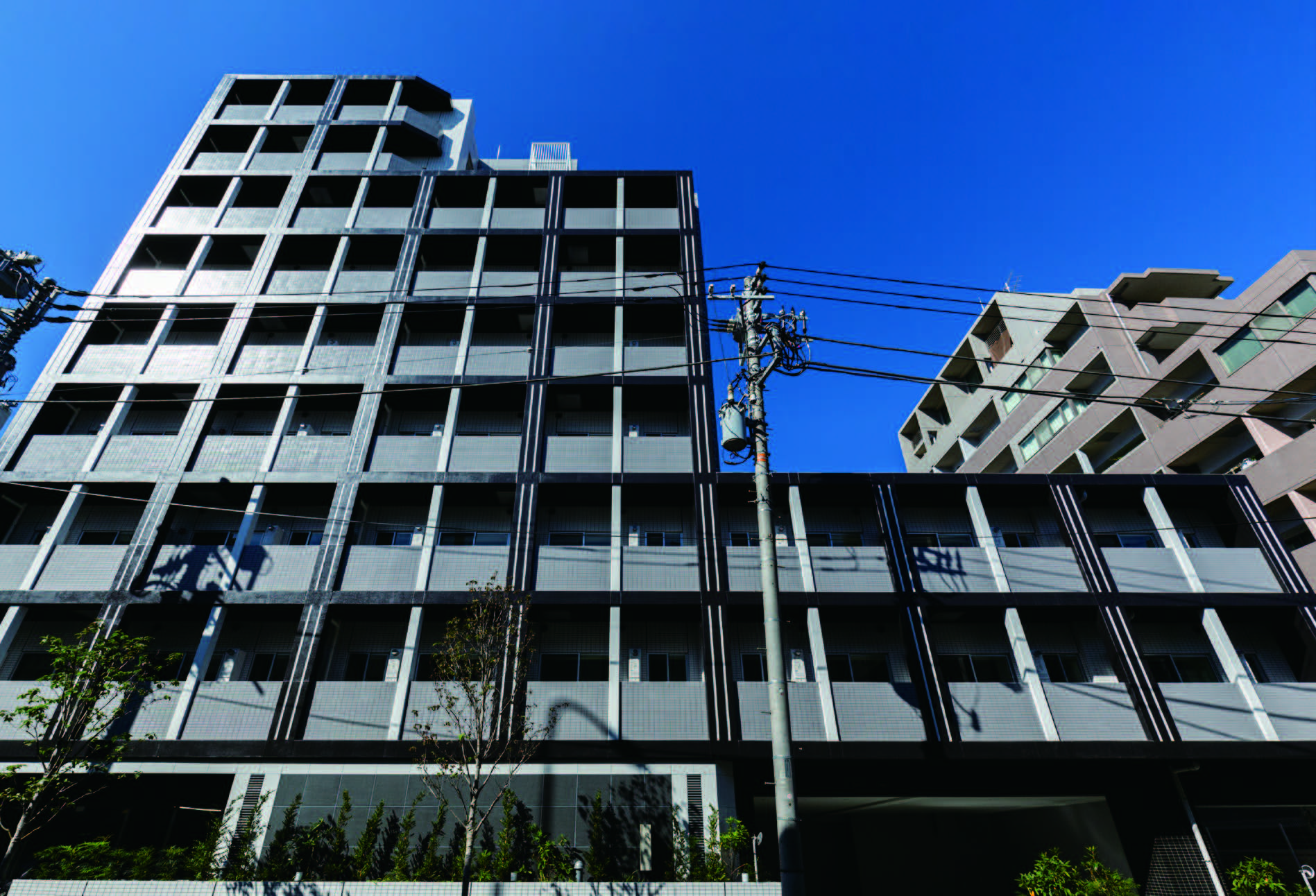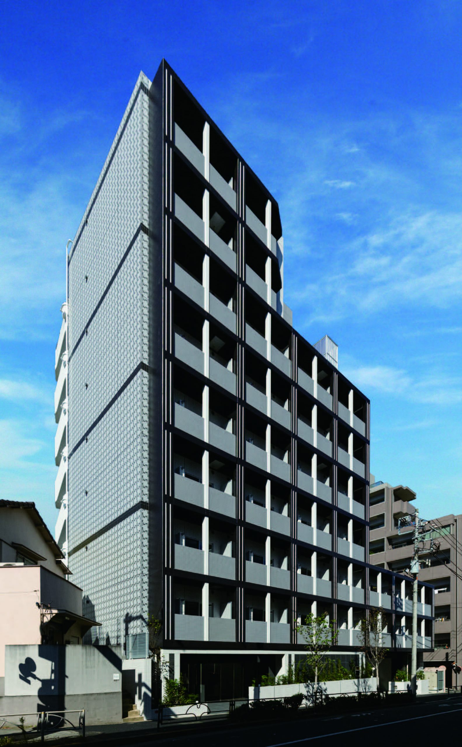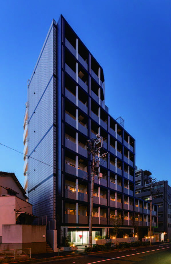 ファミリー住戸の附置義務が厳しい板橋区での投資用マンション。当初25㎡のワンルーム住戸49戸、55㎡以上のファミリー住戸18戸で企画したが、ファミリー住戸の価格が高額になるため、25㎡のワンルーム14戸、35㎡以上の1LDK60 戸とし、より高い採算性を生み出した。35㎡タイプではDINKS層を想定し、オープンカウンターキッチン、収納量の大きなウォークインクローゼット、広々とした住空間としても使用できる3連引き戸による居室間の間仕切りなど随所に住まいやすさを追求した間取りを実現している。