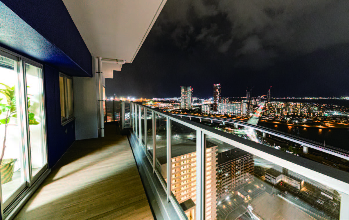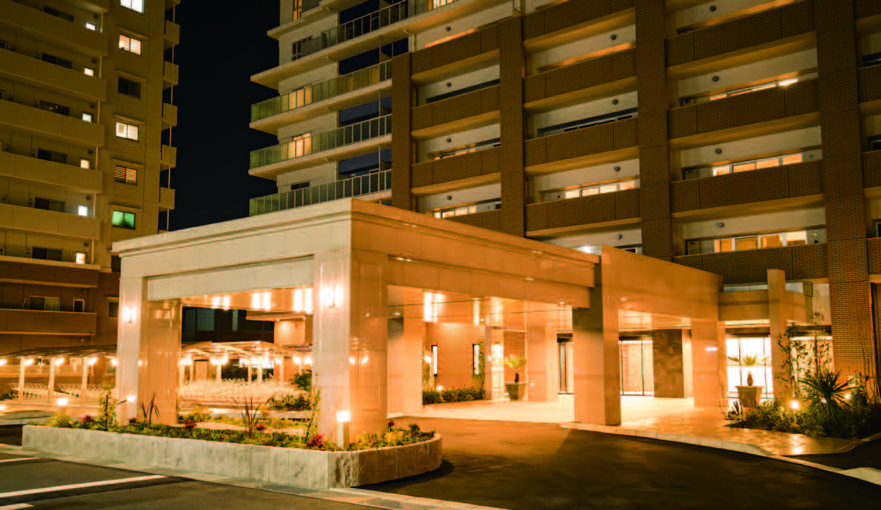 福岡市東区香椎浜の美しいロケーションに立つ地上32階建の免震タワーレジデンス。駅近の物件ではないが天神・博多エリアへのアクセスは良好で利便性は高い。幅30mの広さとスケール感を演出したエントランス、色鮮やかな青基調のモザイクタイルを使用した水盤が美しい。小梁のない居住空間、充実した共用施設、免震構造、玄関前でのゴミ回収サービス等、コストパフォーマンスに優れたプロジェクトである。期分け販売を行わず、販売開始時に全住戸の価格を公表、総戸数587戸の事業を完結させた。