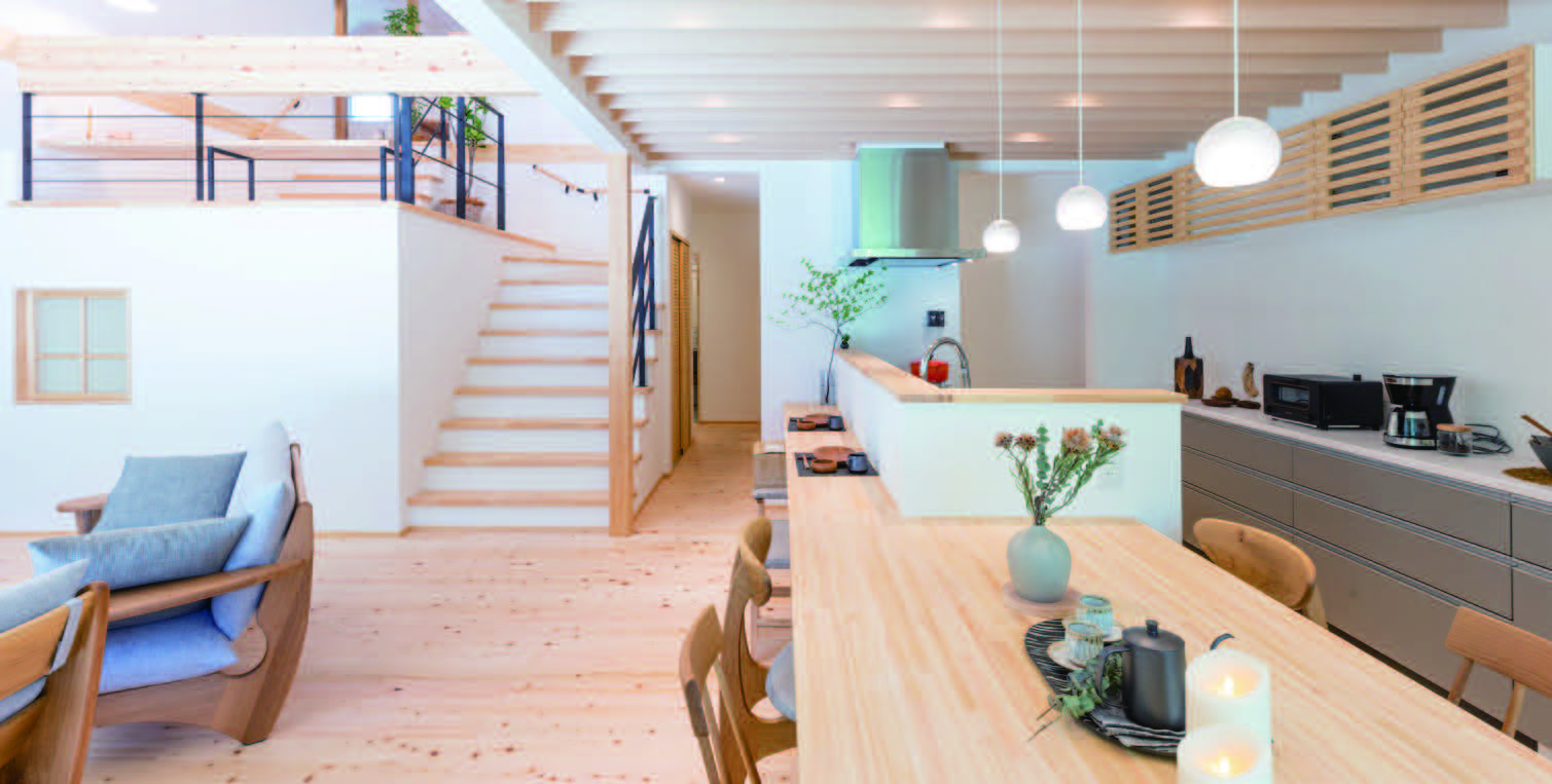 仙台駅東口住宅展示場にオープンしたモデルハウスと宿泊体感できるモデルハウスを併設した本社ショールーム。地元宮城県産の木材や自然素材をふんだんに使用した地産地消の家づくりとともに太陽光発電や全館空調、外断熱、最新のIoT設備などを完備し未来基準の仕様を提案している。各棟は、木の香りやぬくもりに包まれた 「深呼吸したくなる家」 で、宿泊体験により住み心地の良さを体感することができる。また、各施設ではヨガ教室や料理教室、子育てセミナーなど各種ワークショップを開催しており、地域への貢献度も極めて高い。