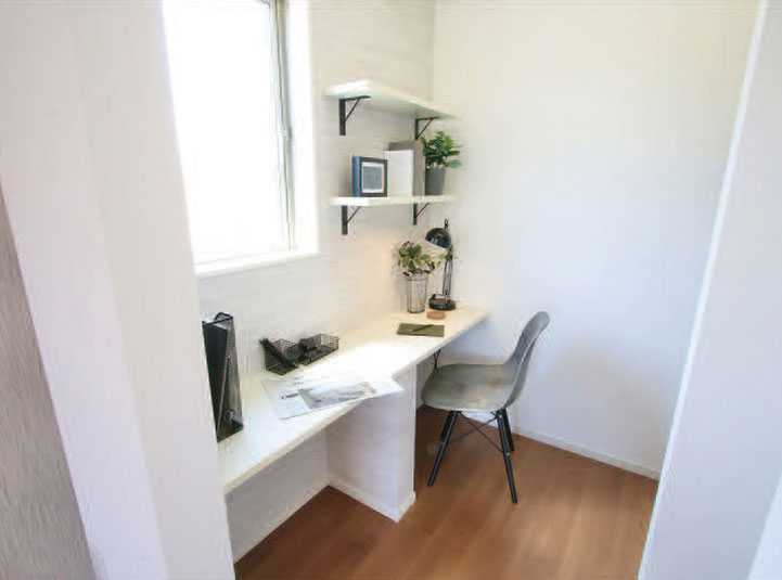「在宅」や「リモート」などの言葉がすっかり定着しつつある昨今、「仕事」と「プライベート」を両立し、おうち時間をより楽しめる住宅を。そして、いつかこの不自由な生活から解放された後も家族が暮らしやすく、豊・楽・快な人生を送ることができる住まいを。そんな想いから計画したのが、この「アエラス水戸市小吹町」である。