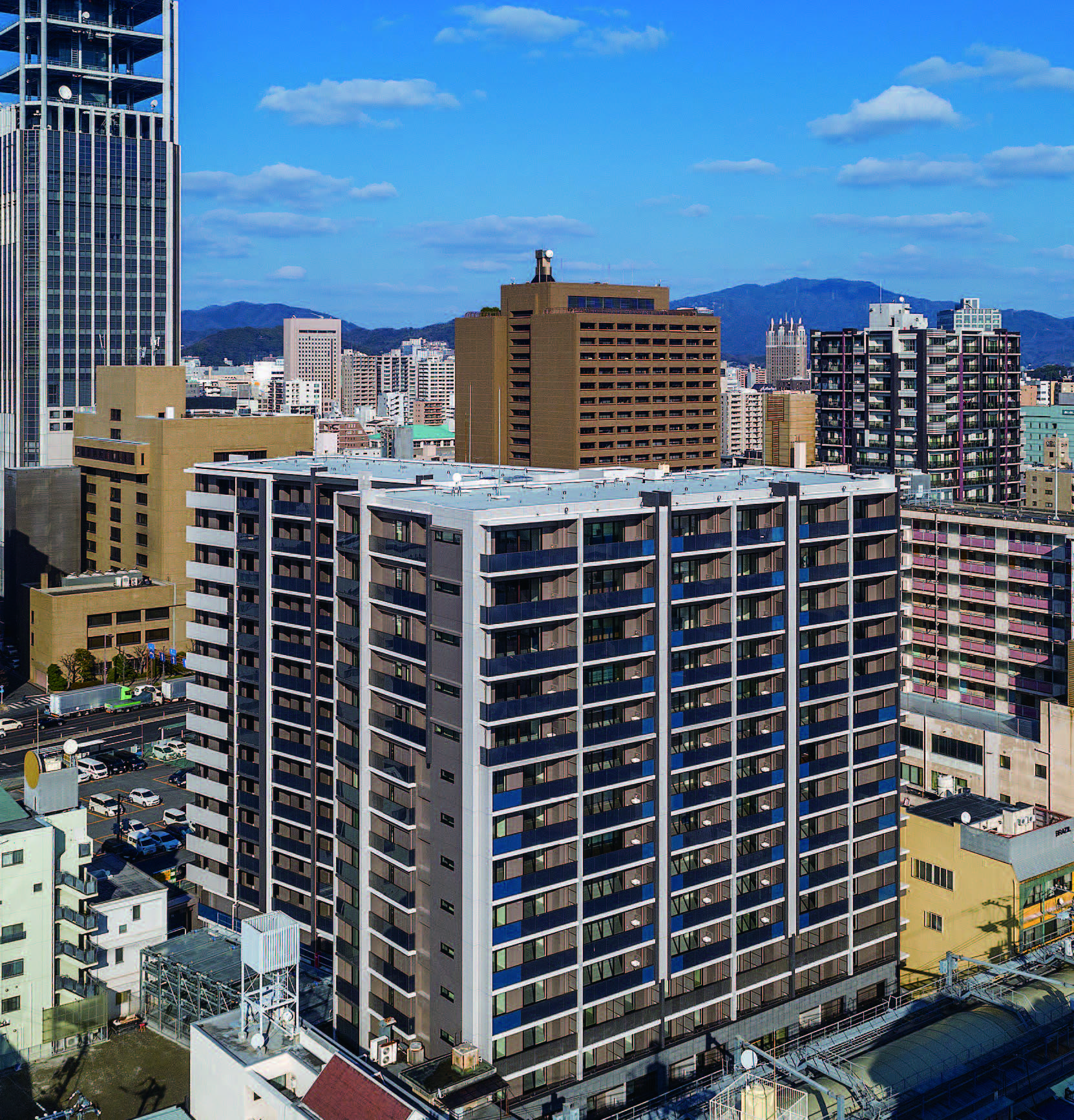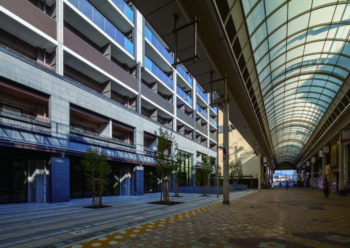 事業推進手法としてSPCを利用した不動産特定共同事業法に基づく適格特例投資家限定事業として行い、地方都市における新しい民間単独再開発事業を実現した。建物は商店街との一体感や街の新たなランドマークとなることをメインテーマにスタイリッシュな外観フォルムを形成し、2層吹抜けのエントランスホールはホテルのロビーを思わせる上質な空間となっている。また、多様なライフスタイルに対応するため1R~3LDKの34タイプ188プランを提案し、建物竣工により約500人が居住することとなり地域の活性化にも大きく寄与している。