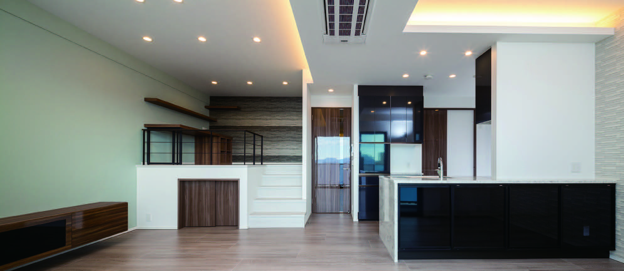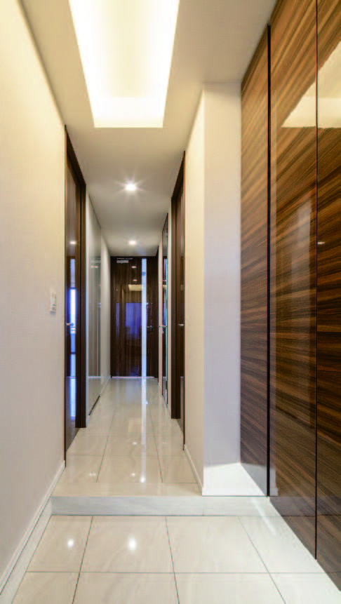 また、エントランスホールは2層吹抜けとしホテルのロビーを思わせる上質な空間を取り入れることにより、邸宅としての品位を感じさせる空間とした。