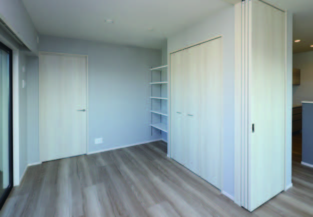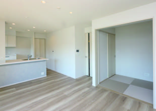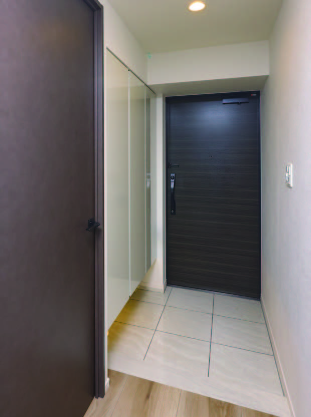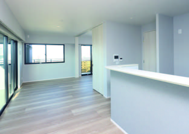 内部についても、ペアガラス(複層ガラス)やボイドスラブ工法の採用、二重床、二重天井構造としてメンテナンスや将来のリフォーム時に自由度が高まるようにしております。共用部には13台の防犯カメラを設置し、屋内外からの侵入者や盗難防止に24時間対応しております。