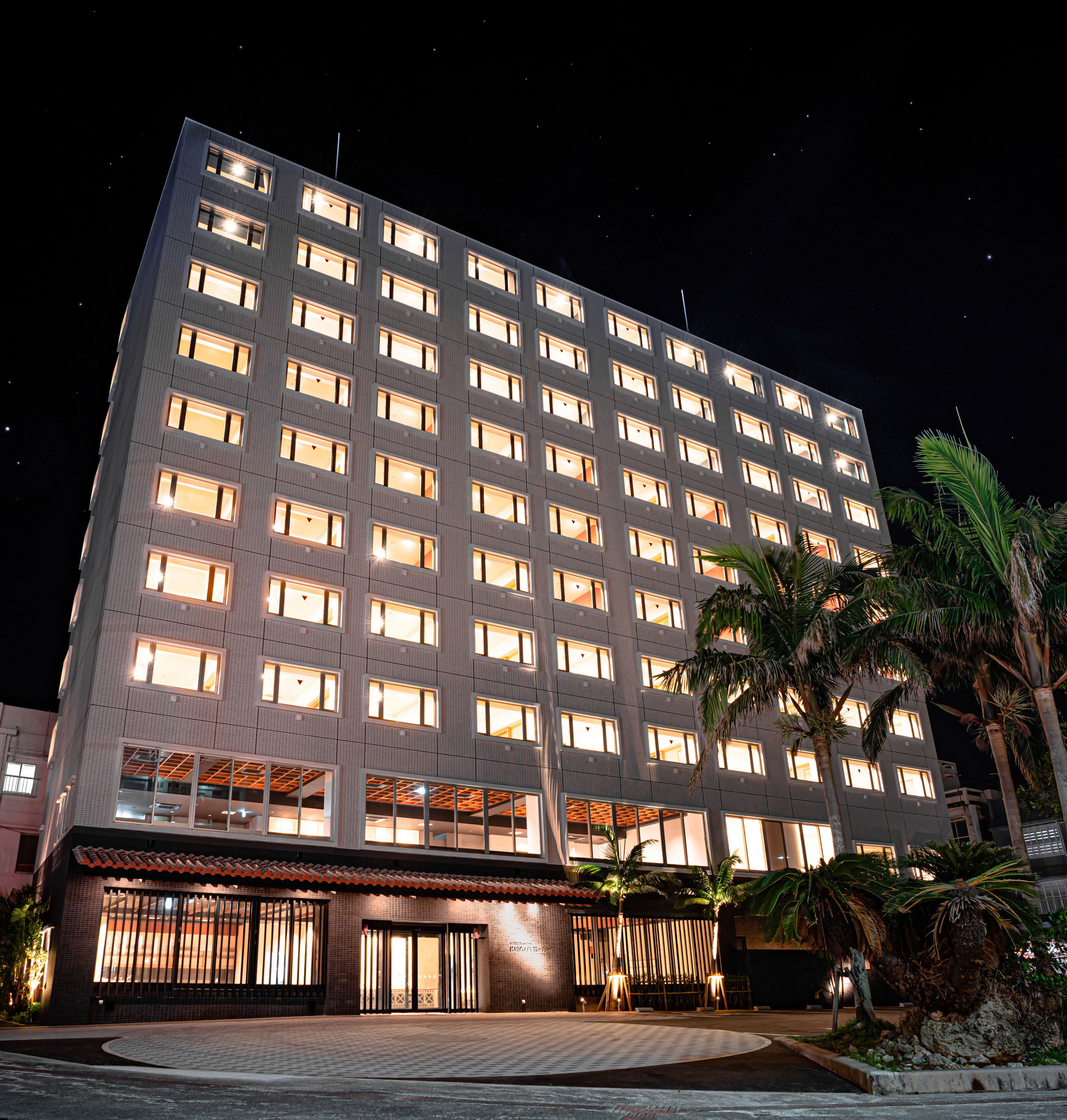 離島におけるホテル建替事業。石垣島では人手不足が顕著であり、建替え後の新規(再)雇用が難しいことから、別館を先に建設し、従業員の雇用を確保した後、本件の建替えを行った。名古屋工業大学の伊藤准教授にデザイン設計を依頼、八重山諸島の大自然や独特の風土・文化をモチーフにフロアごとに異なる3つのスタイルを計画した。離島ターミナル港に近く、島内で最も人が集まる交差点に立地するため、観光の起点のみならず、周辺商店街の活性化の核として期待されている。また、旧ホテル時代から「津波一時避難ビル」に指定され、災害時の拠点としての使命も担っている。