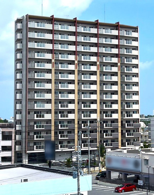 歴史と自然がマッチするよう計画的に整備された綺麗な街並みが特徴の沖縄県中城村に位置するファミリーマンション。地上14 階建全65 世帯の新たなランドマークとなる圧倒的な存在感で堂々としたスケール感がある。街並みと共存するよう、色合い等緻密にデザインした特徴あるスタイリッシュなファサード、テレワーク等に利用できるカウンターブースをエントランスホールに設置した。車社会である沖縄の実情を踏まえた2台駐車場を43 世帯で確保した共用部に加え、5タイプの間取りを用意し、沖縄県民の住宅購入を推進する価格帯で、約4か月の早期完売と契約後キャンセル0件の実績が高く評価された。