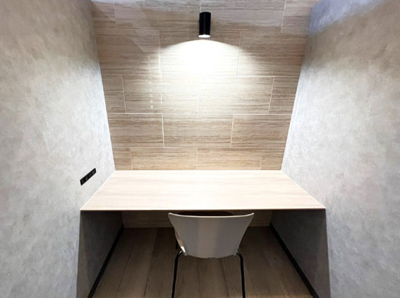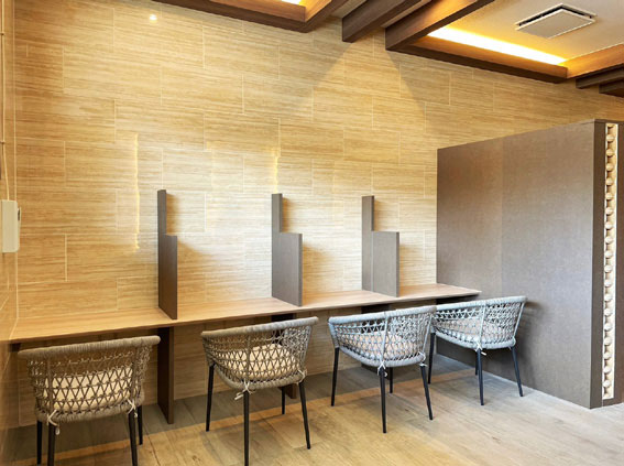 コロナ禍の「おうち時間」ニーズに応え、エントランスホールには学習やテレワーク・多目的に利用できるカウンターブースを設置。