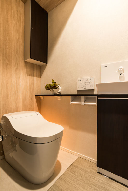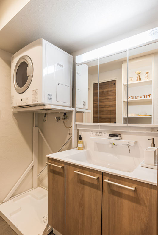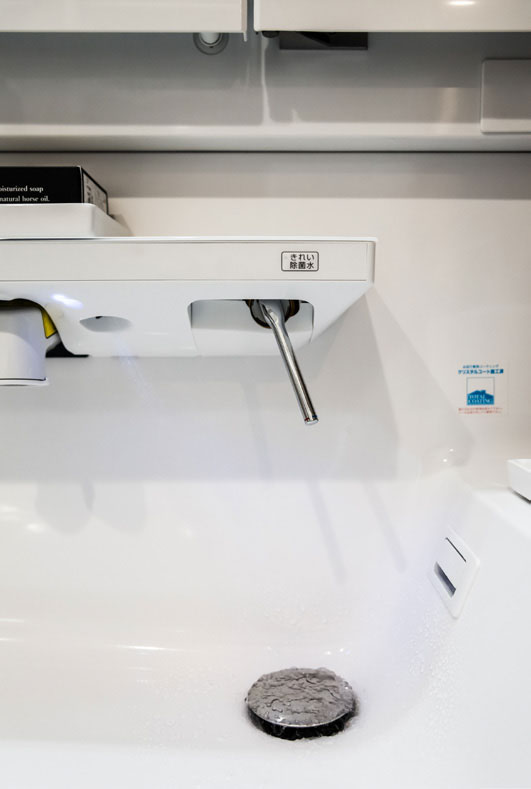 また、洗面化粧台の「きれい除菌水」は、菌や汚れを除菌・分解し、清潔にしてくれ、水に含まれる塩化物イオンを電気分解して除菌成分を持つ環境にやさしい水(次亜塩素酸)をつくります。