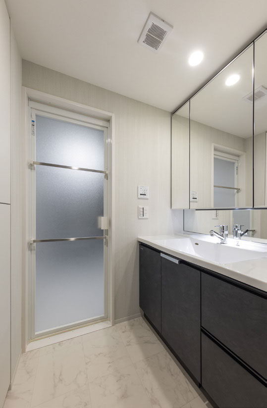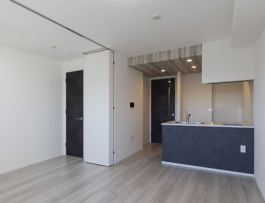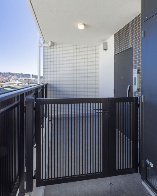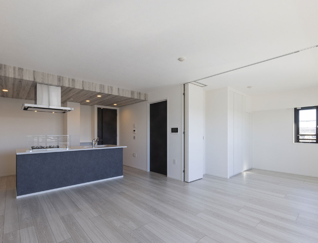 住戸は2LDK から4LDK の間取りとし、リビング横の洋室との仕切りをウォールドアとすることで、お客様のライフスタイルに応えられるようにし、エントランスホールのオートロックはハンズフリーで解錠でき、住戸の玄関ドアも鍵を取り出さずに施解錠ができるように暮らしやすさも高めて計画しました。